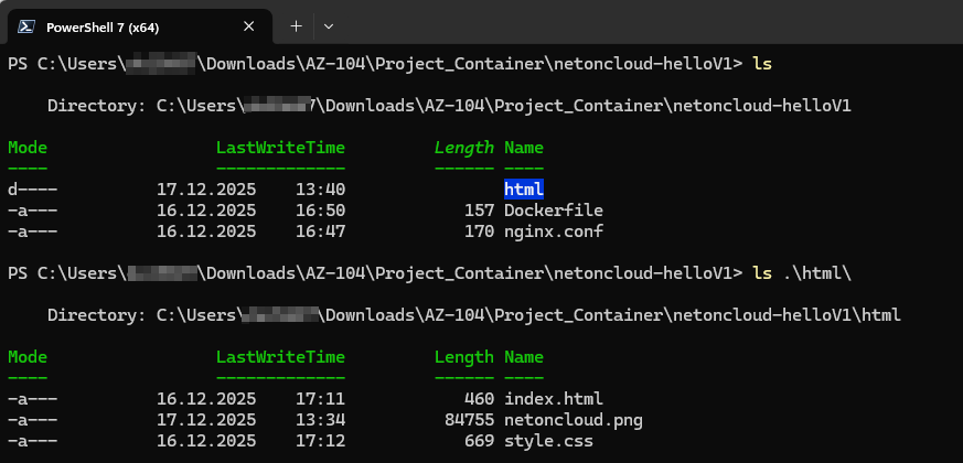 If you prefer you can download the entire project directory from my GitHub repository: https://github.com/az104tor/containers/blob/main/netoncloud-helloV1.tar.gz