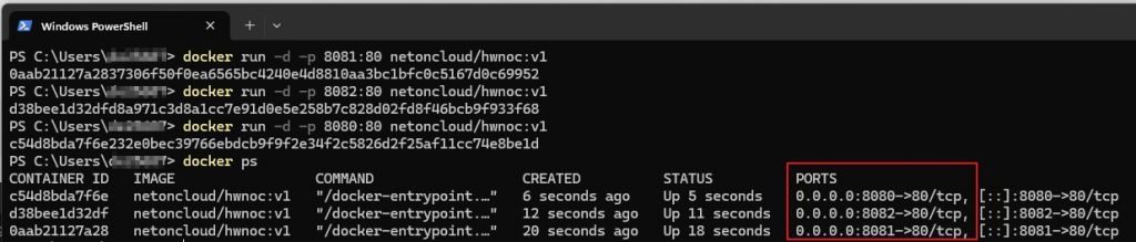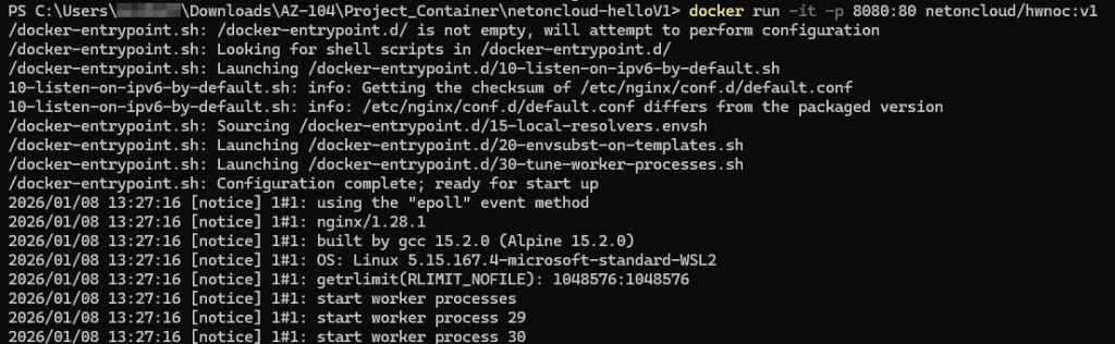 docker run -it -p 8080:80 netoncloud/hwnoc:v1