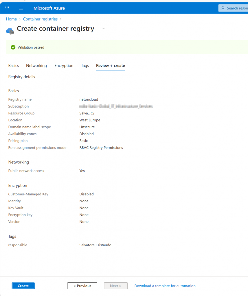 This tutorial demonstrates how to push the NGINX “Hello World” container image from our previous tutorial to Azure Container Registry (ACR) and deploy it as an Azure Web App. The main objective is to create an easy hands-on lab for the Azure AZ-104 certification. For this reason, I’ve minimized the complexity of operations and start from the Azure Portal to create the main resources.